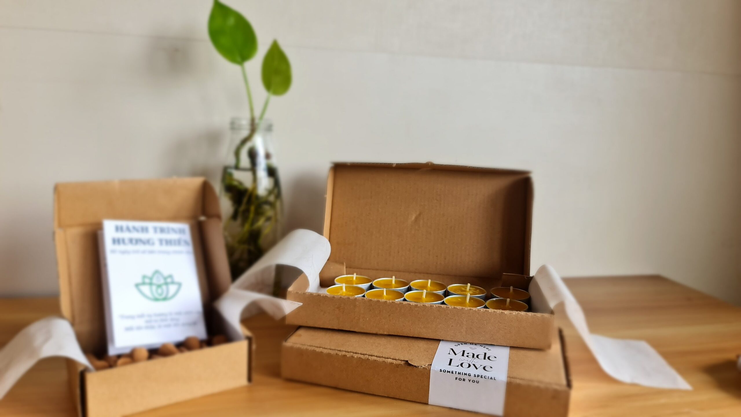– Hộp nụ hương + hộp nến bơ đóng gói chỉn chu, đẹp như một lời cầu chúc.