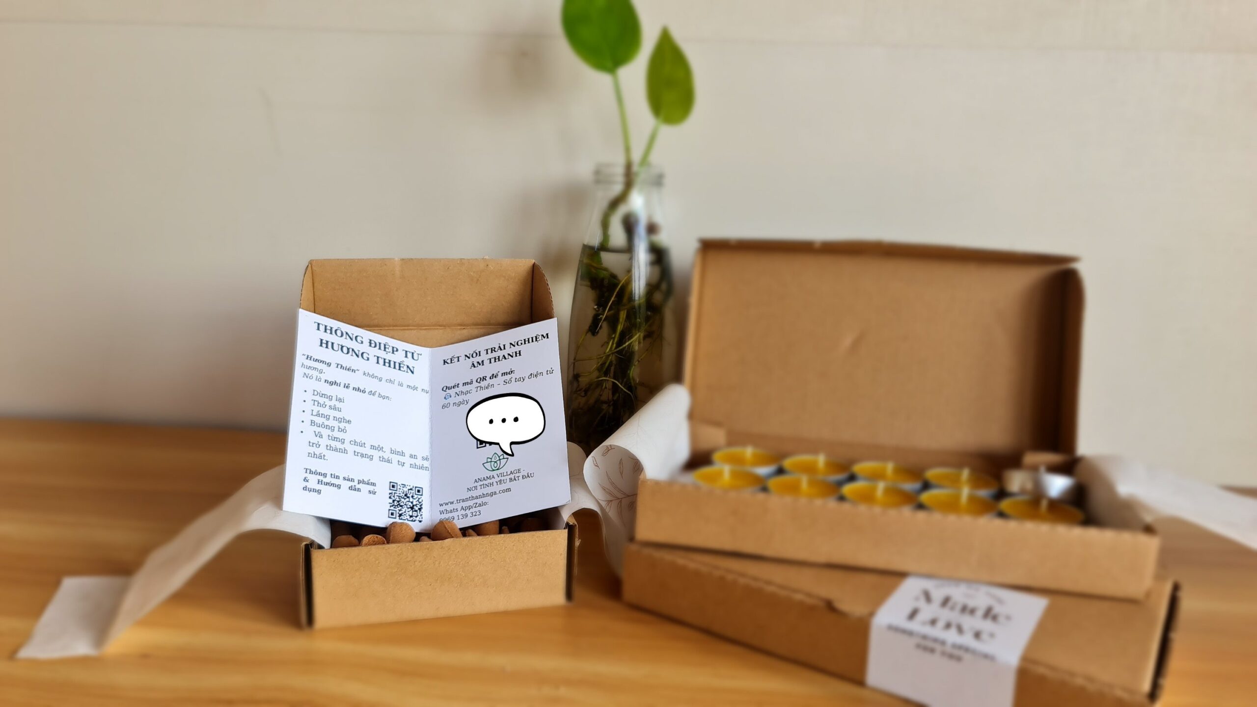 Mỗi viên cháy 4 giờ – ánh sáng êm dịu, không khói – như một ngọn đèn nhỏ bên trong lòng tay, không gắt gao mà đủ sáng để soi rọi vào tâm.