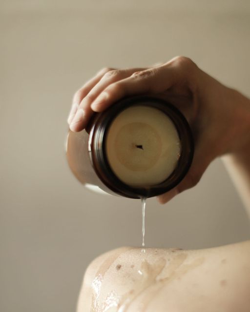 – Đốt nến 10–15 phút, để sáp tan thành dầu massage ấm.
